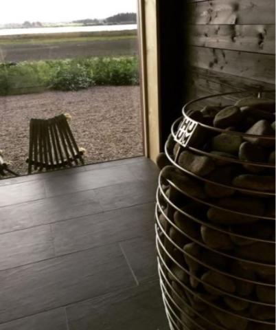 HIVE electric sauna heater is an elegant solution for bigger saunas, for example, for spas and gyms. This floor-mounted heater holds up to 550 lbs of stones, which ensure a long-lasting hot steam even for larger groups, without compromising on design.