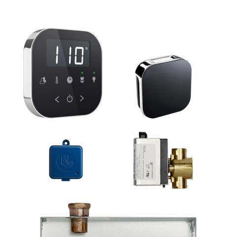 The MS Air Butler package comes complete with the AirTempo steam shower control, a matching finish AromaSteam steam head, the AutoFlush cleaning system, the SteamLinx module and mobile application, and a drip pan.